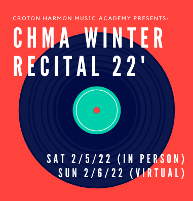 VIRTUAL ZOOMIES RECITAL INFO DATE: SUNDAY 12/12/2021 TIMES: Session 1B: 3PM - 4PM Session 2B: 430PM - 530PM (tentative) LOCATION: ON ZOOM! CHMA ZOOMIES: 2022 WINTER RECITAL: Join Zoom Meeting: https://us02web.zoom.us/j/89338223821 Meeting ID: 893 3822 3821 Passcode: 123456